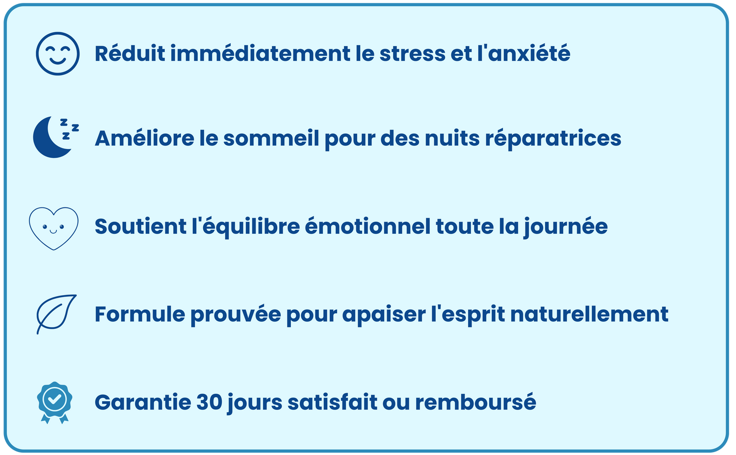 | Résultats prouvés (92% d’utilisateurs apaisés) | ||