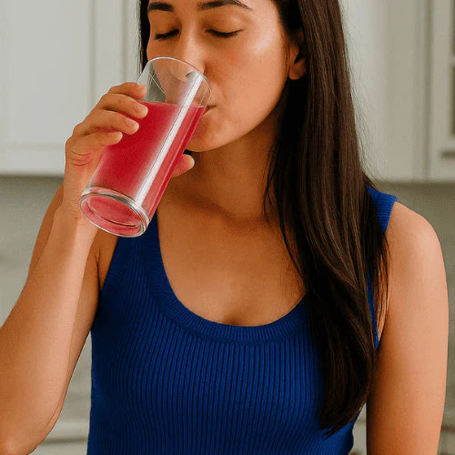 Une saveur douce et fruitée, avec une légère note végétale — pensée pour être rafraîchissante, pas médicinale.